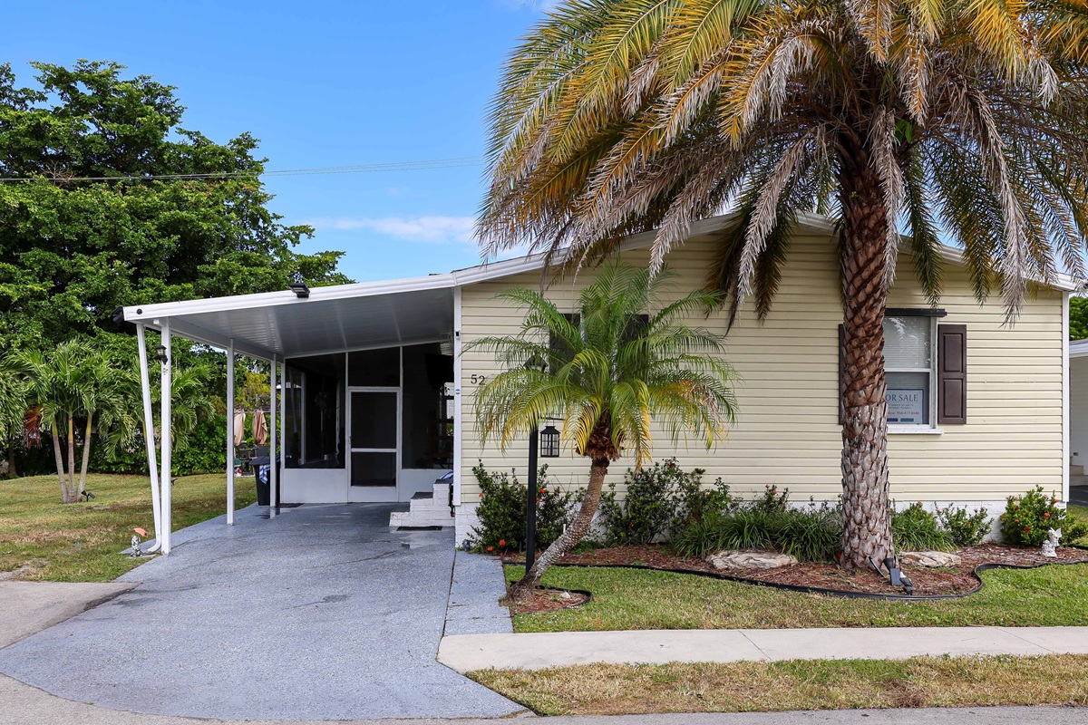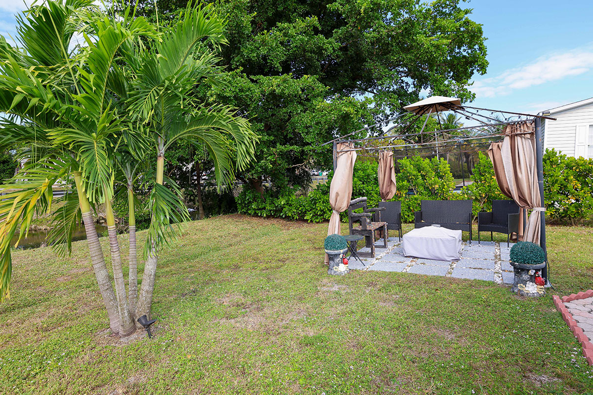 Set on a desirable corner lot alongside a quiet and peaceful canal, "Calm Waters Cabin" has been transformed into a sleek, modern retreat offering three bedrooms and three beautifully updated bathrooms—an uncommon luxury at this price point. The home has been fully remodeled, featuring striking white porcelain tile flooring throughout, recessed lighting, fresh knockdown-textured walls, and clean contemporary finishes that create a bright, spacious, and inviting interior. The open-concept living and dining areas flow effortlessly into a stunning upgraded kitchen with new white cabinetry, quartz countertops, stainless steel appliances, a smooth-top range, and a multifunctional center island ideal for food prep, casual dining, or entertaining. Each of the three bathrooms has been tastefully redesigned with new plumbing, modern fixtures, updated tilework, LED-lit mirrors, and crisp, contemporary styling. The bedrooms are comfortably sized, including a primary suite with its own private en-suite bath. Additional improvements include a newer A/C system (approximately 2.5 years old), upgraded plumbing throughout, and a large screened-in patio and pergola out back -- perfect for relaxing outdoors. The extra-large lot and serene canal-front setting offer added privacy, lush views, and a tranquil South Florida lifestyle. Finally, like all homes in this desirable lakeside community, you will appreciate central air and heat, your own outdoor storage shed, and access to the community's extensive recreational amenities including fitness, tennis, basketball, beach volleyball, clubhouse, sauna, heated pool complex with separate kiddie pool, playground, lake recreation and more.