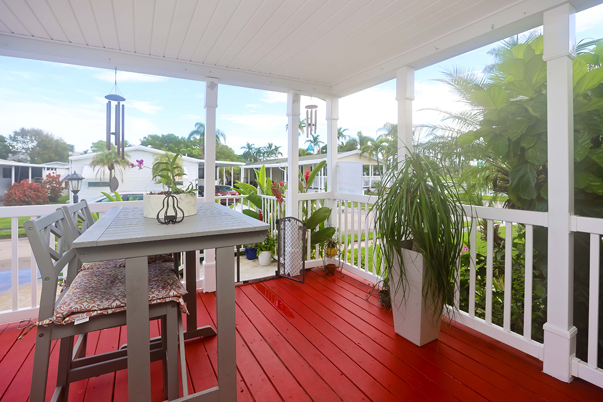 ‘Villa Allegre’ is a spacious three-bedroom, two-bath bungalow set in a prime location just steps from the lake, clubhouse, and community amenities—offering effortless access to the pool complex, tennis and basketball courts, gym, sauna, and playground. Curb appeal abounds with tropical landscaping, including flowering hedges, pink hibiscus, and mature palms, while the covered half-porch enjoys tranquil lake views, making it an ideal spot for morning coffee or breakfast. Inside, the home showcases stylish rustic, rough-hewn honey-toned laminate flooring that adds warmth and texture, complemented by elegant crown and baseboard molding and charming wainscoting. The open eat-in kitchen features seating for four, white cabinetry, and matching stainless-steel appliances—including a French-door Samsung refrigerator, smooth-top range, built-in microwave, and dishwasher—with a convenient laundry niche housing the washer and dryer. The primary suite serves as a private retreat with designer paint, a designer ceiling fan with compact blades, a walk-in closet, and an en-suite bath featuring a spacious quartz countertop with ample cabinetry, a window that fills the room with natural light, and a nicely appointed shower enclosure. Ceiling fans in both the master and living room ensure year-round comfort throughout the home. Two additional guest rooms are identical in sized and mirrored side-by-side with a shared guest bath. Finally, like all homes in this desirable lakeside community, you will appreciate central air and heat, your own outdoor storage shed (reimagined as a versatile tool shed with attached man cave --currently in use as a workout free weight space with bench-- and access to the community’s extensive recreational amenities including fitness, tennis, basketball, clubhouse, sauna, heated oversized pool complex, lake recreation and more.