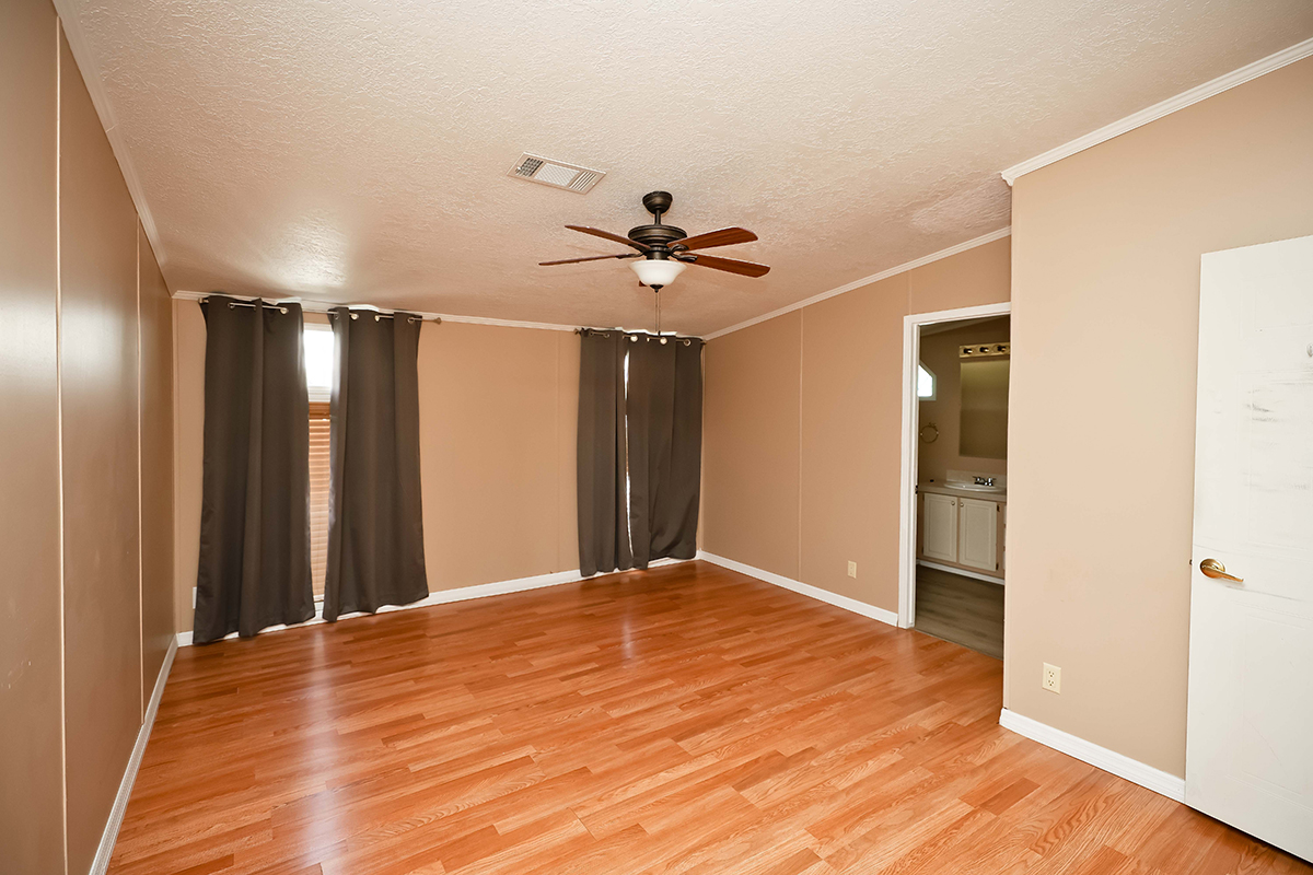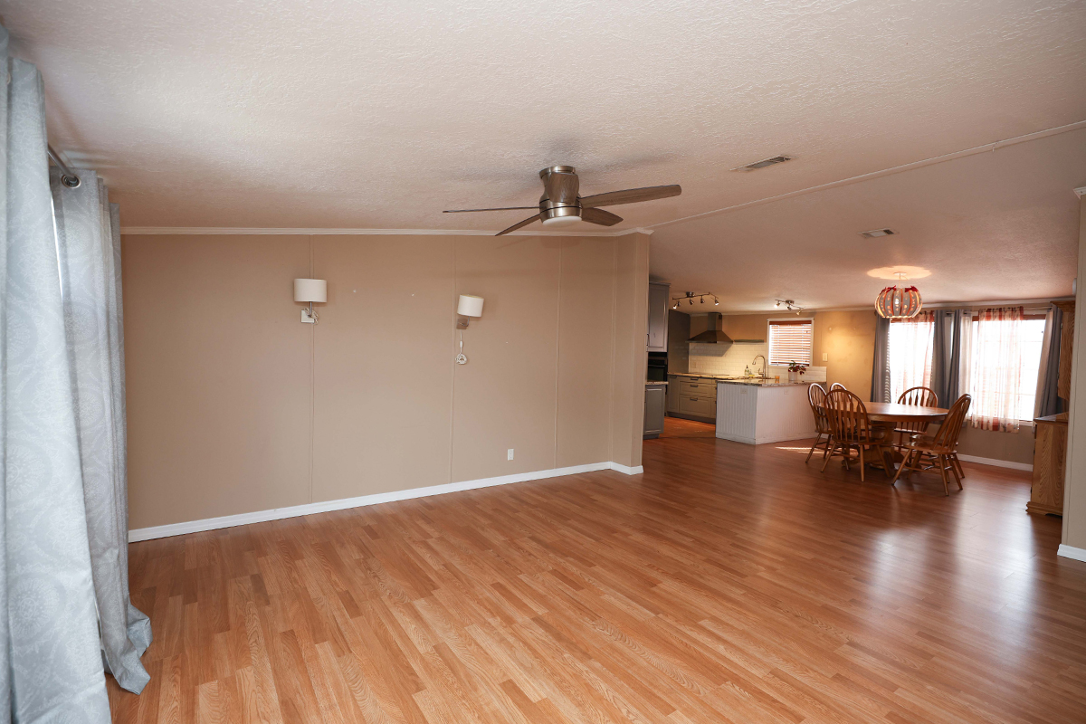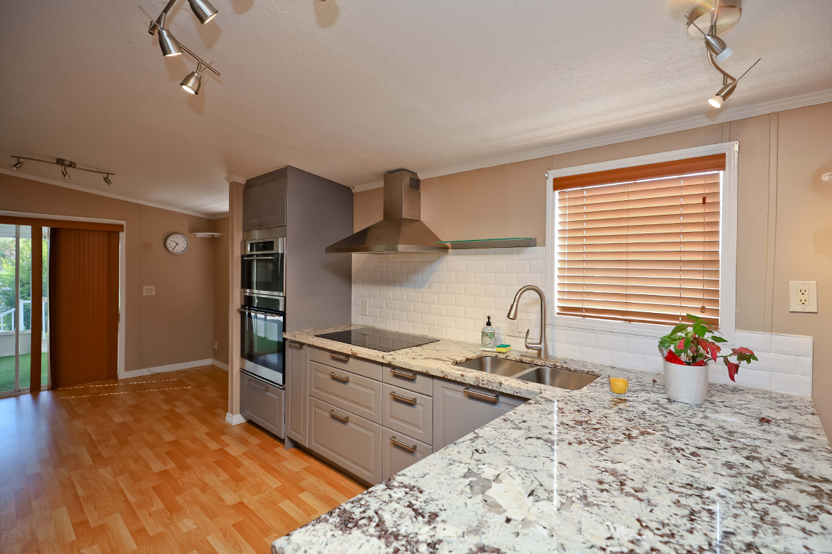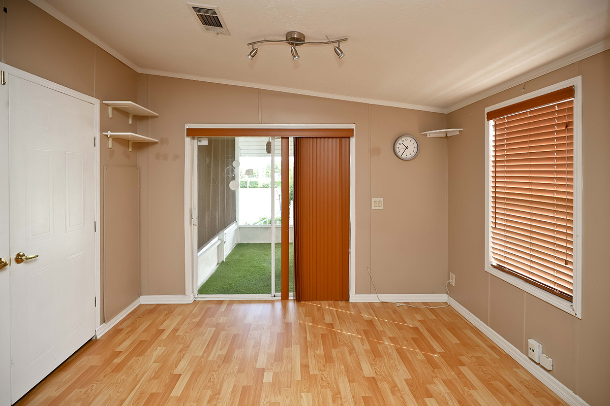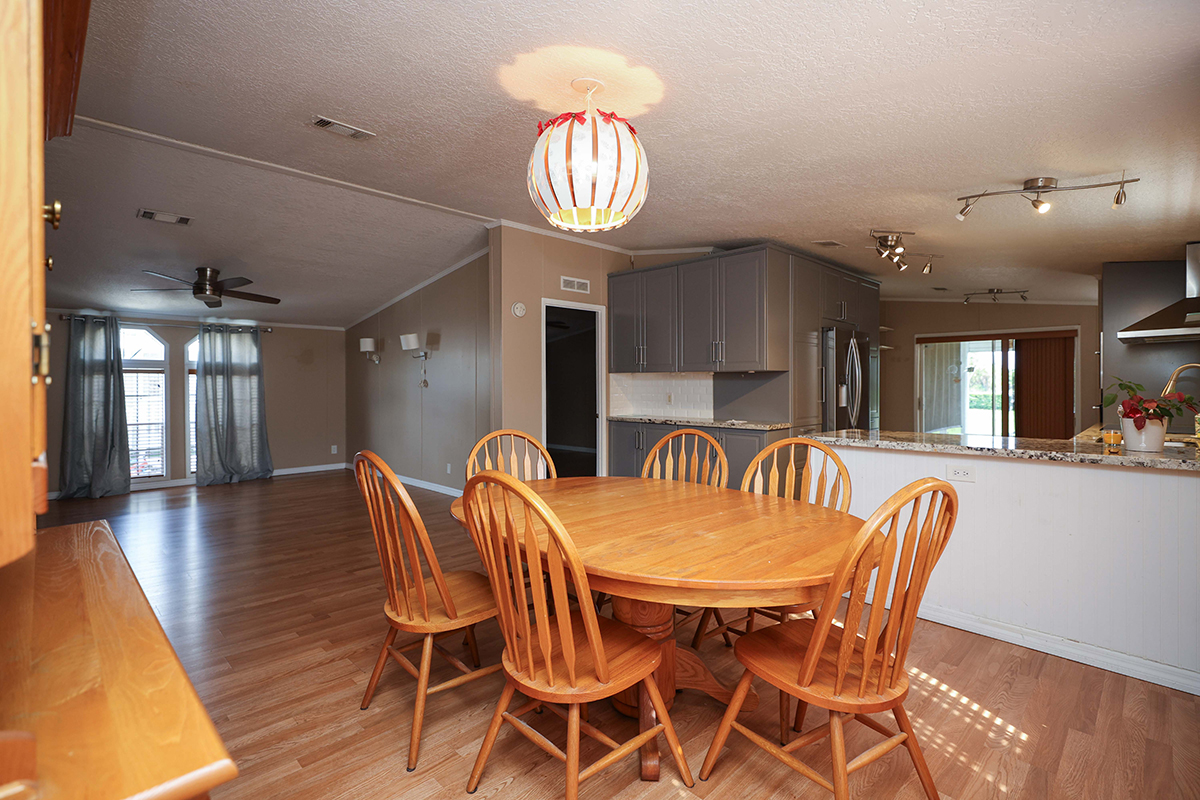 Welcome to "The Big Apple" — a beautiful, spacious 3 bedroom, 2 bath home perfectly situated on Apple Lane, one of Paradise Village’s most desirable streets, with no neighbors in front and sparkling Paradise Lake right at the end of the block. An spacious screened-in front porch with ceiling fan and light-control shades invites year-round outdoor living. Step inside and immediately notice sophisticated warm, honey-colored hardwood laminate in all common areas and upgraded light fixtures and ceiling fans throughout. The galley kitchen is a showpiece, featuring custom cabinetry, granite counters, stainless steel appliances (including a built-in wall oven and microwave, smooth cooktop with euro hood, plus side-by-side refrigerator with door-through ice and bottom freezer drawer), and stylish subway tile walls. Multiple eating areas — from the bright morning room, to the formal dining area, to the breezy screened porch — offer flexibility for entertaining or daily living. The primary suite impresses with dual sinks, an oversized Roman soaking tub, and a separate shower. With vaulted ceilings, mature trees, a terrific location and coveted side-by-side parking, this residence delivers comfort and value. Though the roof is original, the home remains dry and is offered at a terrific price for an all-cash buyer (required due to roof age; insurance waiver applies). Finally, like all homes in this desirable lakeside community, you will appreciate central air and heat, your own outdoor storage shed, and access to the community’s extensive recreational amenities including fitness, tennis, basketball, clubhouse, sauna, heated oversized pool complex, and more.